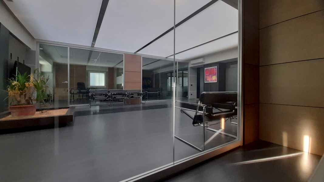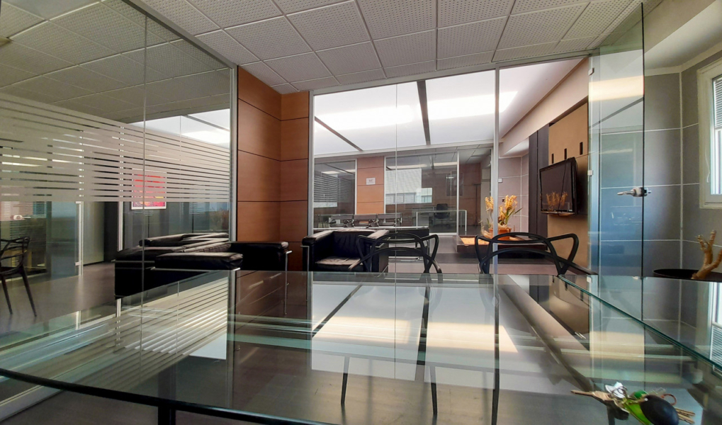 ampio ingresso/reception da piano strada con scala di accesso al primo piano, grande hall/ufficio, ufficio presidenziale con archivio annesso e 7 ulteriori uffici molto spaziosi; completano il piano il bar, antibagno, doppi servizi e servizio disabili.