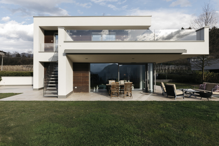 La villa sorge su un lotto pianeggiante di circa 1.000 mq, interamente fruibile, e si distingue per la perfetta integrazione tra spazi interni ed esterni. L’area esterna accoglie un ampio piazzale con possibilità di parcheggio per più veicoli, oltre a un curato giardino privato con suggestiva vista aperta sul paesaggio circostante.