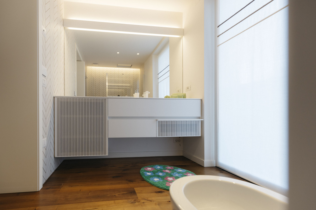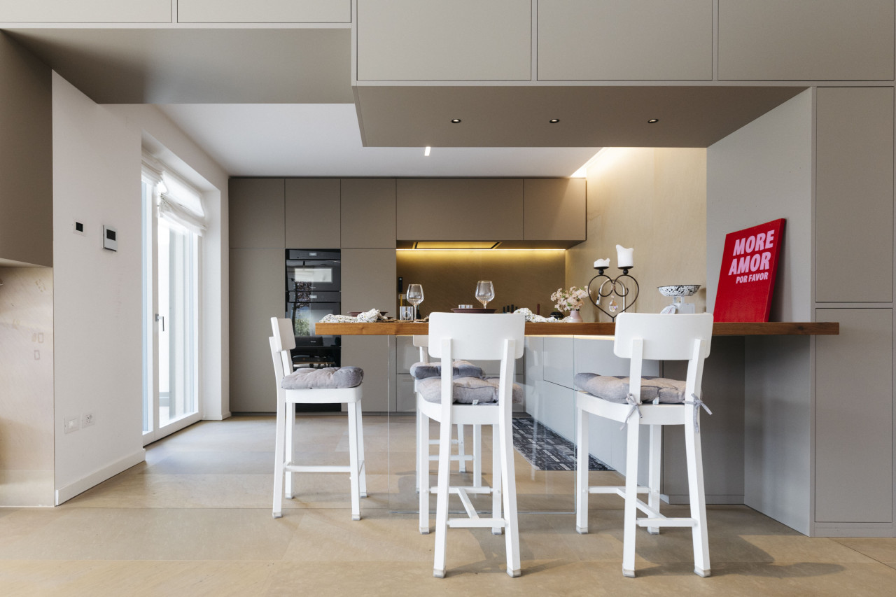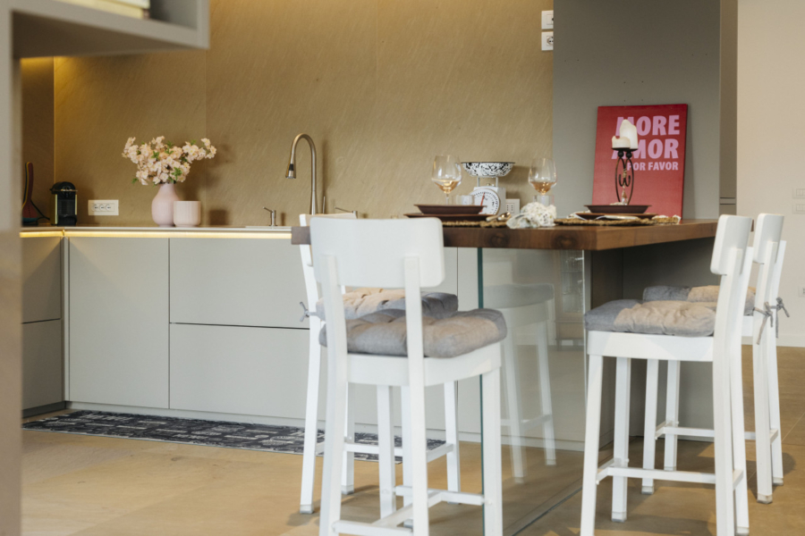 Gli interni si distinguono per finiture di altissimo livello, una progettazione curata nei minimi dettagli da interior designer e uno studio illuminotecnico che valorizza gli spazi, creando un’atmosfera sofisticata e senza tempo.
