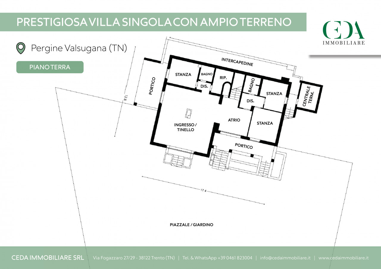 In posizione dominante, altamente soleggiata e con esposizione eccellente, proponiamo in vendita una proprietà di assoluto pregio sopra l’abitato di Pergine Valsugana, a soli 15 minuti da Trento e a pochi minuti dal Lago di Caldonazzo.