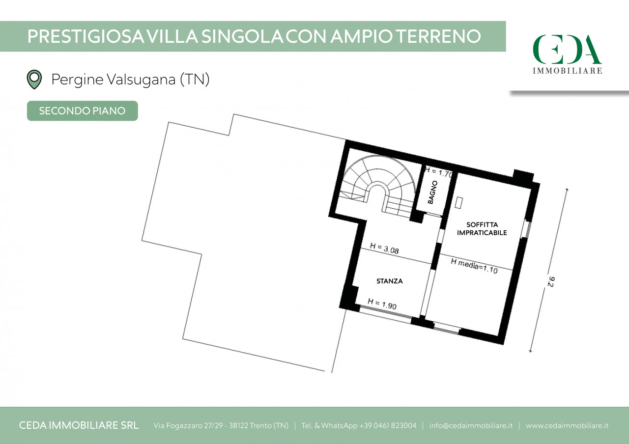 • Piano secondo: area relax con sauna, bagno e ulteriore locale multiuso;