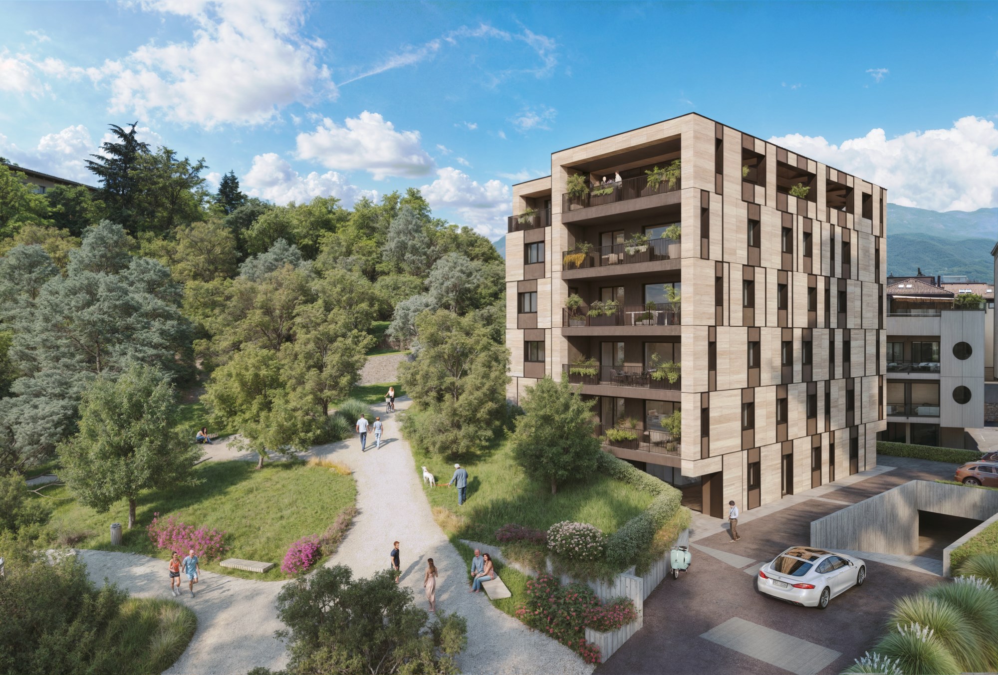 La palazzina vedrà la realizzazione di 6 piani fuori terra e due interrati per un totale di 15 unità abitative e un piano dedicato a uffici e verrà realizzata con materiali e finiture di alto livello in Classe Energetica A4.
