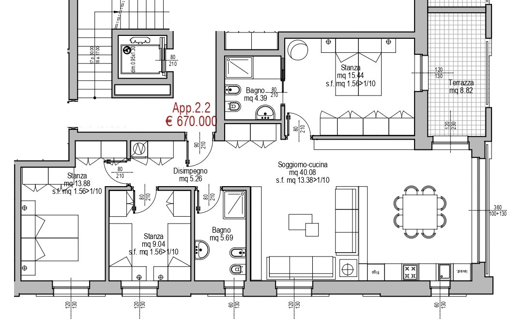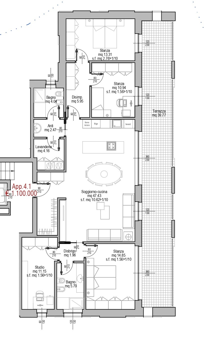 Gli appartamenti sono dotati di tapparelle motorizzate, raffrescamento e riscaldamento a pavimento, generosi spazi terrazzi esterni e grandi vetrate che illuminano gli spazi interni.