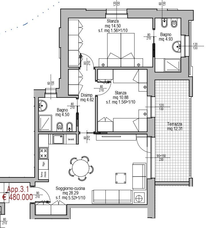Proponiamo in vendita in palazzina in nuova costruzione appartamenti di varie metrature.