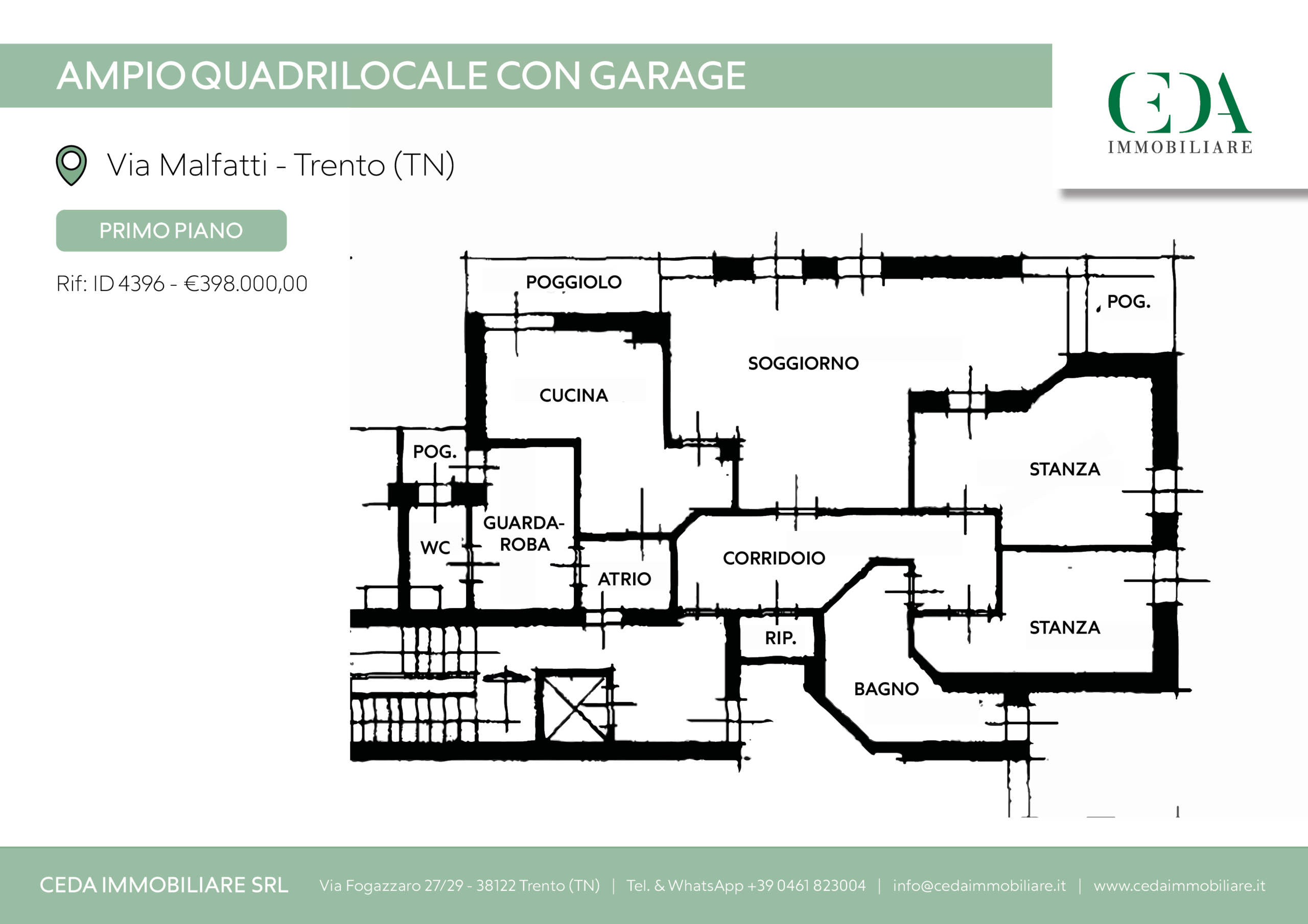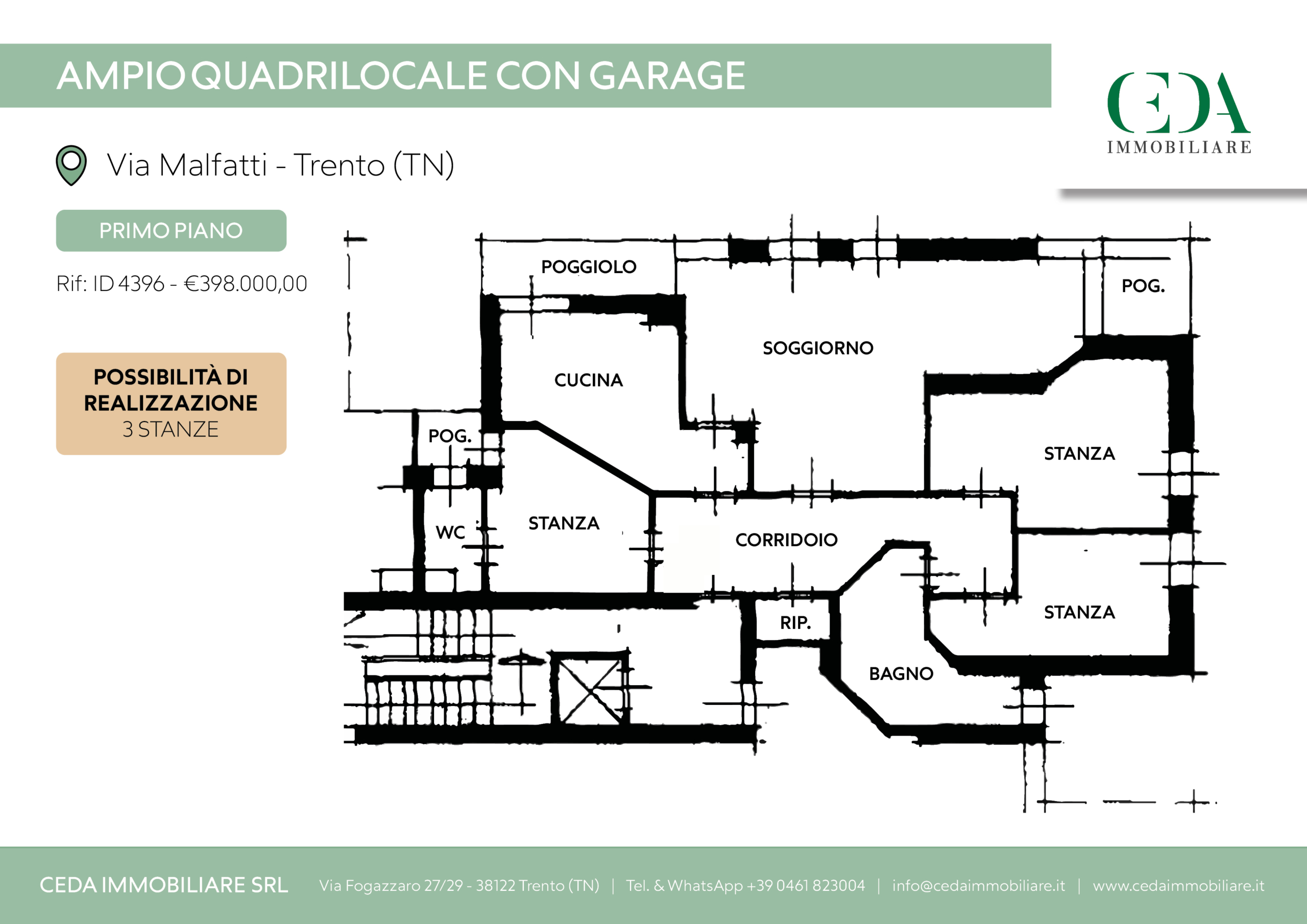Proponiamo in vendita in Via Malfatti, una delle zone più richieste e ricercate di Trento grazie alla posizione centrale e servitissima, un appartamento al primo piano con ascensore, inserito in una palazzina elegante e ben curata.