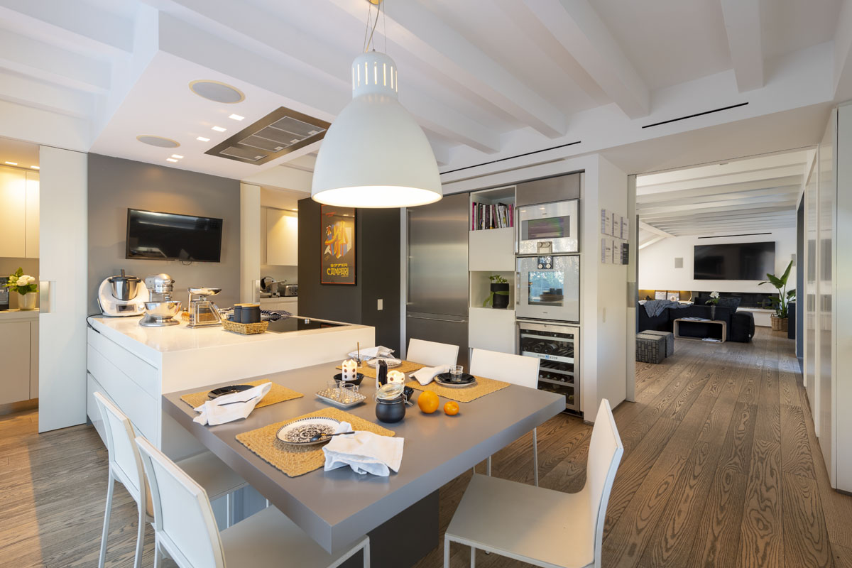 Nel dettaglio la villa si sviluppata su 3 livelli collegati tra di loro con elevatore privato e scale.