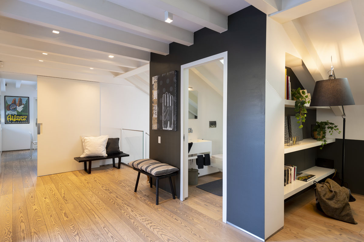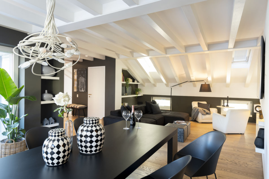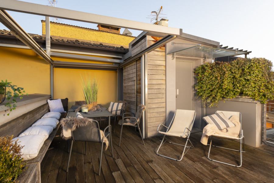 Al secondo piano fantastica terrazza affacciata sul Fersina collegata dall’elevatore privato che serve tutti i piani della casa.
