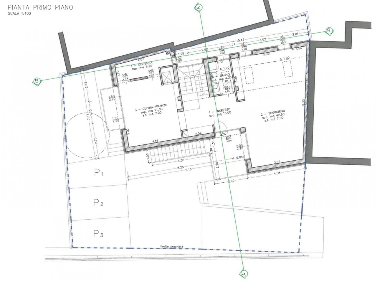 Esternamente abbiamo un piccolo giardino, una tettoia coperta utilizzata come locale di stoccaggio e 3 posti auto.